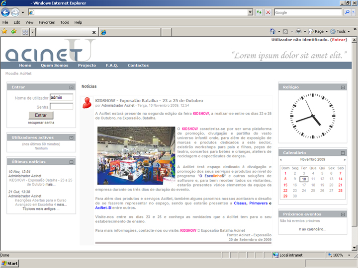 Como forma de melhor demonstrar esta questão, a AciNet construiu o seu próprio Moodle não apenas com o objectivo de mostrar todas as potencialidades do software, mas também com o objectivo de o utilizar para ministrar formação a quem necessite de desenvolver conhecimentos e competências na área.